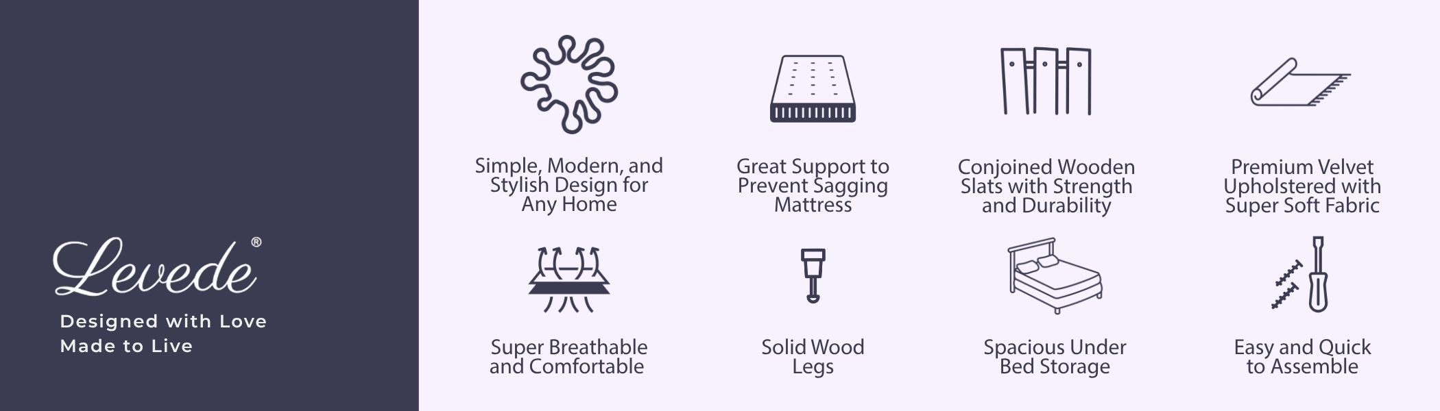 It builds with comfortable, luxury, and durability in mind. The premium velvet upholstered bedhead used super premium and soft fabric to offer you the ultimate comfort when you lead up to read a book before sleep. The material is super breathable to really offer you the experience that other bed frames can’t.