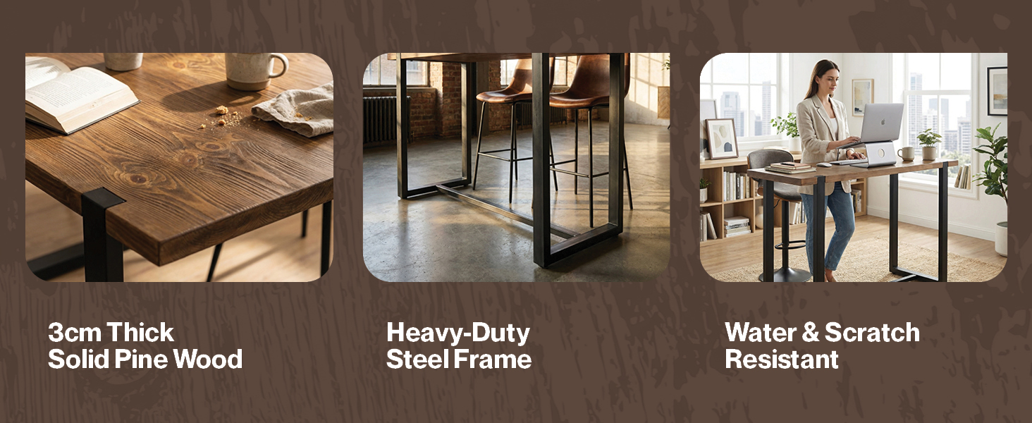Exceptional Versatility: Adapt the table to suit your exact needs. Use it as a chic kitchen bar table for mixing cocktails, or transform it into a highly productive standing desk for your modern home office.